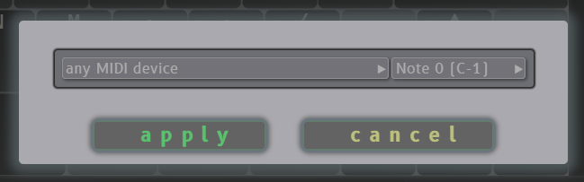 - added option to select 'any MIDI device' as input for added flexibility, so that MIDI assignments don't have to be tied to a specific device