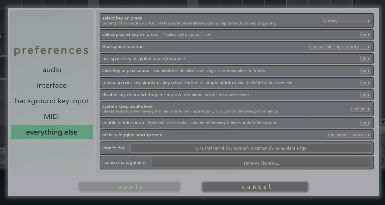 - expanded MIDI configuration Preferences to include: